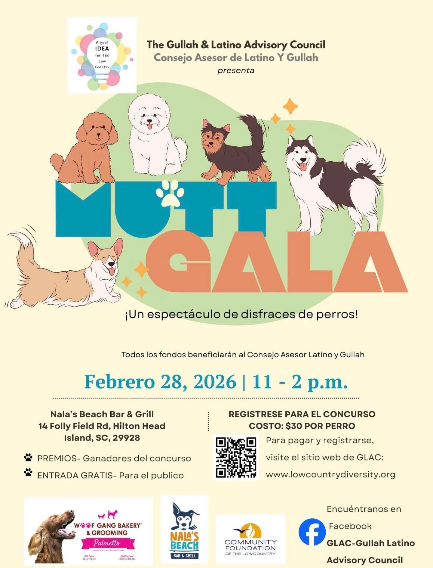 The Mutt Gala celebrates love, creativity, and our furry family members while bringing the community together for a great cause. Dress up your dog, enjoy the lively energy, and take part in a day full of laughter, photos, and unforgettable moments. Guests can look forward to epic dog costumes, prizes for the best-dressed pups, delicious food and drinks, and a vibrant event atmosphere. A portion of the event supports the Gullah and Latino Advisory Council.